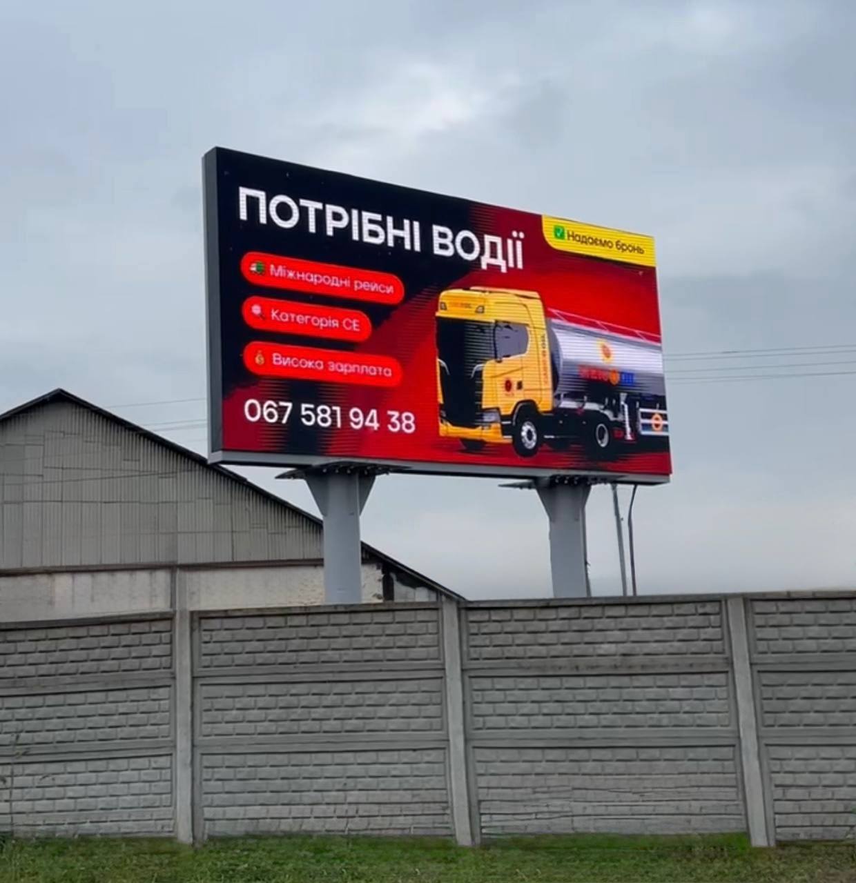 Динамічний LED-борд для зовнішньої реклами та інформування замінює традиційні білборди, даючи змогу транслювати контент без витрат на друк і монтаж. Керування контентом здійснюється дистанційно, а сама конструкція залишається ефективною за будь-якої погоди. Це зручний спосіб швидко оновлювати інформацію.