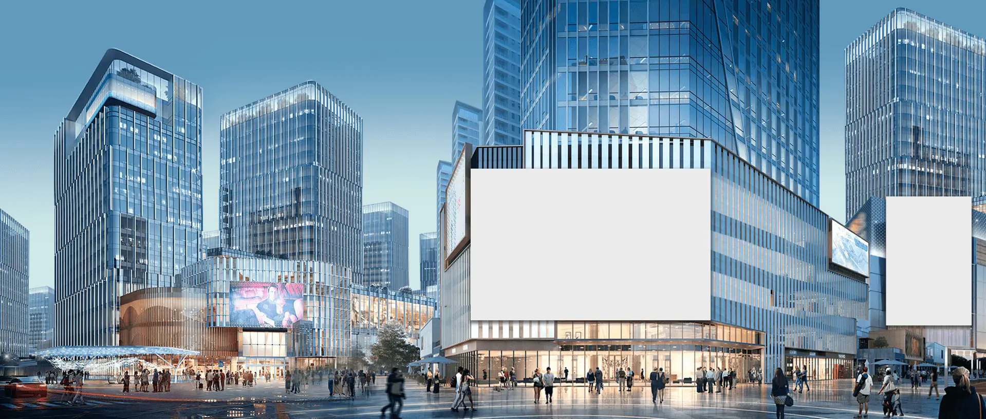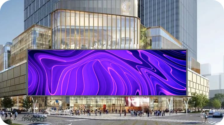 Медіафасади займають великі площі будівель, перетворюючи їх на яскраві інформаційні та рекламні платформи з можливістю транслювати відео та інтерактивний контент.