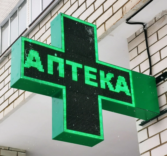 - Динамічний зміст. Світлодіодні екрани можуть відображати інформацію, що змінюється, що особливо корисно для аптек.