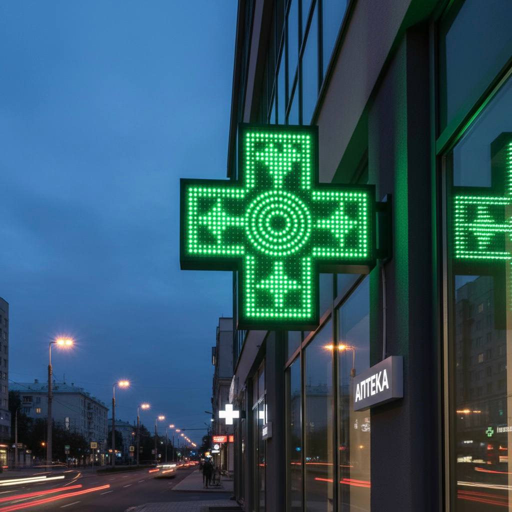 Світлодіодний аптечний хрест — це яскрава вивіска у формі зеленого або червоного хреста, яка привертає увагу перехожих і позначає аптеку. Вона енергоощадна, добре видима вдень і вночі, підвищує впізнаваність закладу та приваблює клієнтів.
