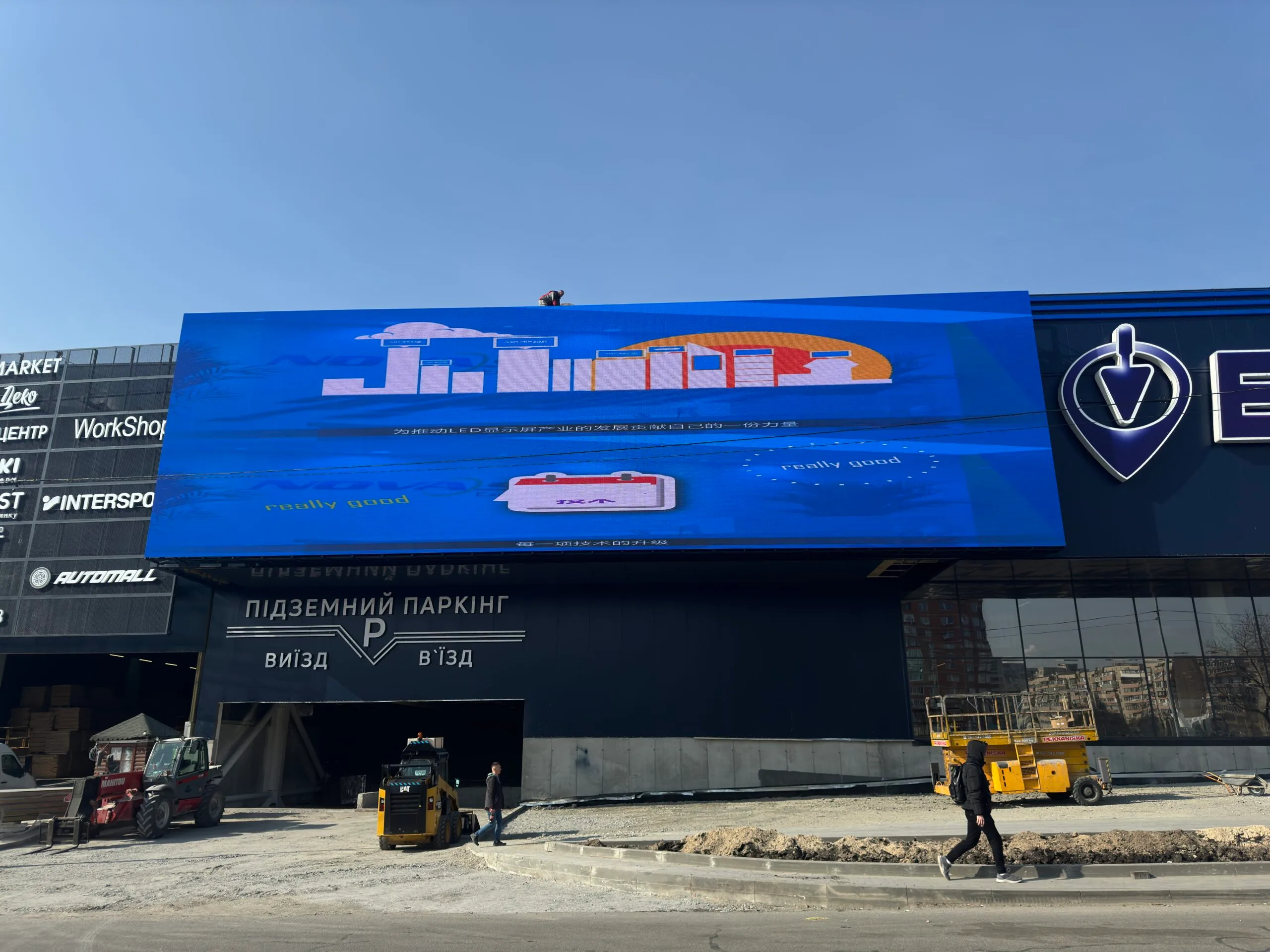 - Монтаж — мы выполняем работы любой сложности, включая высотные инсталляции на фасадах.